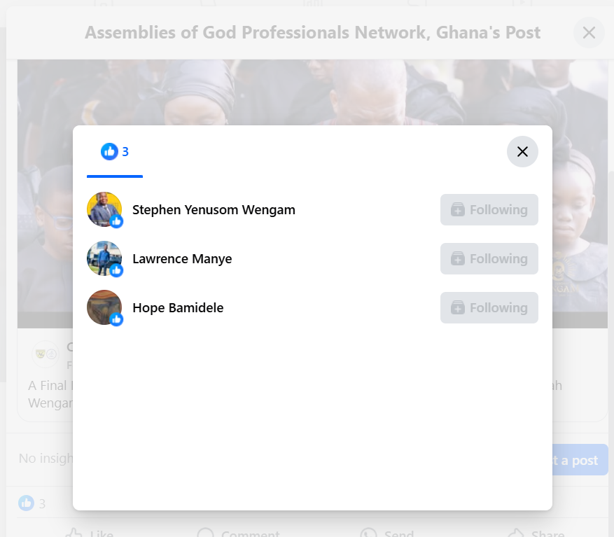 In an exciting development, Rev. Stephen Wengam, General Superintendent of the Assemblies of God, Ghana, has shown his support for the Assemblies of God Professionals Network, Ghana (AGPN) by following and liking a post on the network’s official Facebook page!